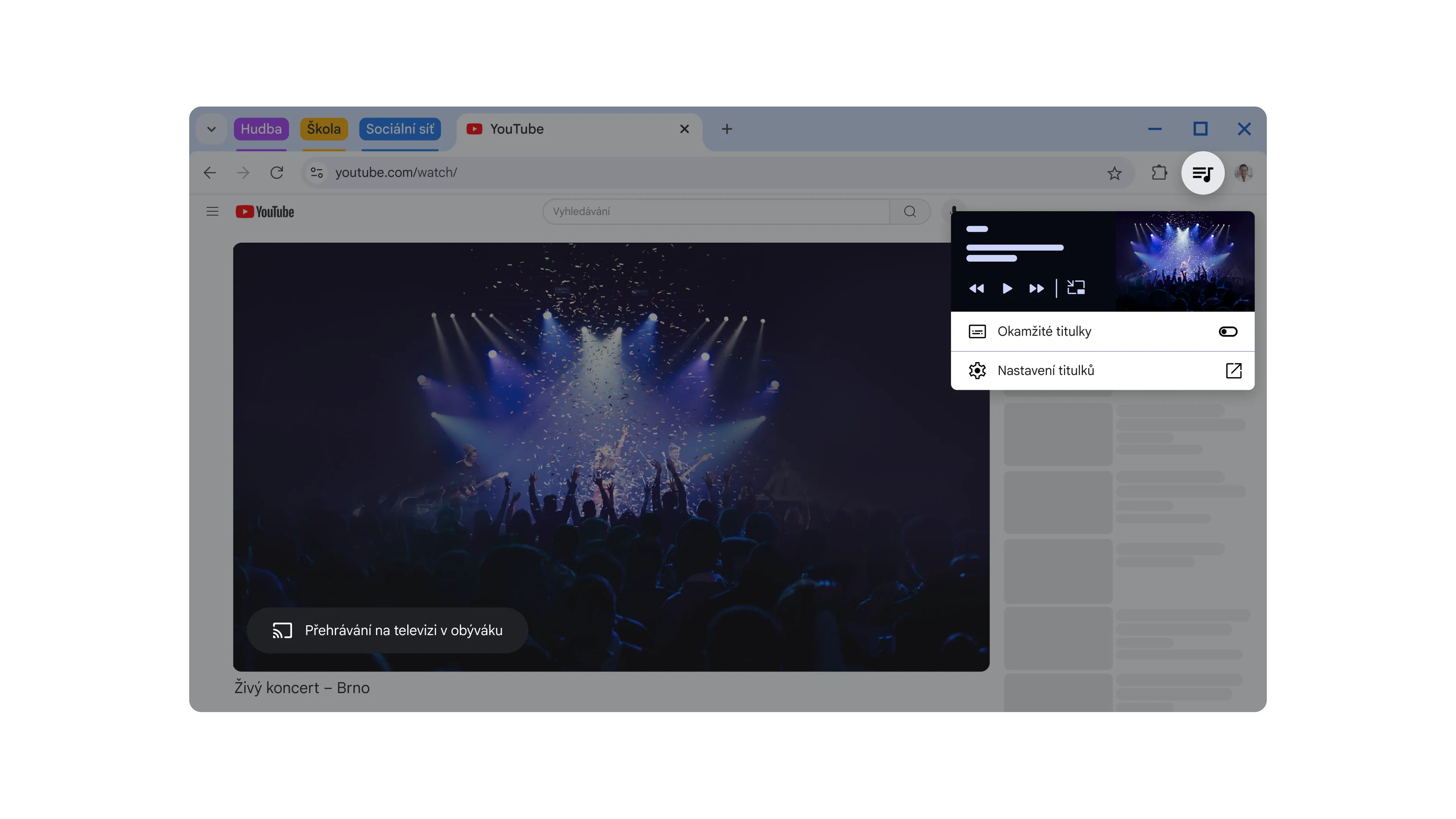 Pomocí Chromu můžete přenášet obsah z počítače nebo telefonu do televize s technologií Google Cast. Přenést lze celou obrazovku nebo konkrétní kartu.