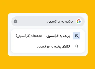 صفحه جستجوی Google با تصویر یک پرنده و جستجوی «پرنده به فرانسوی» با نتیجه «oiseau»