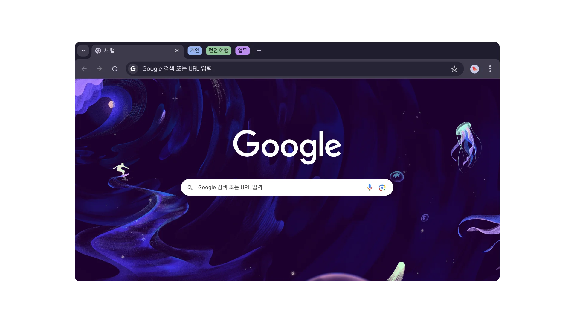 테마와 어두운 모드, 나에게 맞는 다른 옵션을 활용해 웹브라우저를 맞춤설정해 보세요.