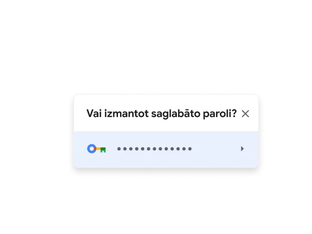 Pārlūkā Chrome ir iebūvēts Google paroļu pārvaldnieks, kas atvieglo paroļu saglabāšanu, pārvaldīšanu un aizsargāšanu tiešsaistē. Tas arī palīdz izveidot drošākas paroles visiem jūsu kontiem.