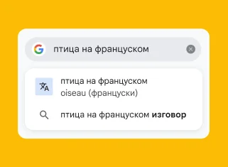 Добијајте инстант резултате када затражите превод речи или кратких фраза тако што ћете унети „[реч] на [језик]“.