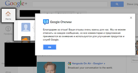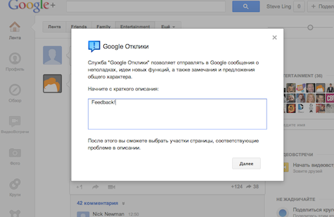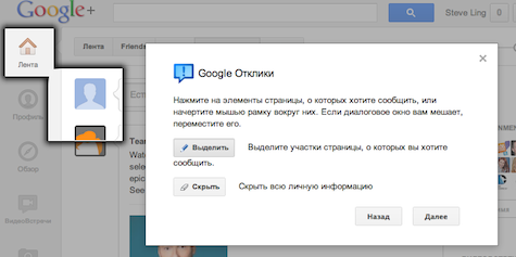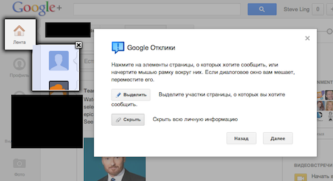 Чтобы активировать Google Отклики, в интерфейсе любого продукта Google нажмите Отправить отзыв или Сообщить об ошибке.