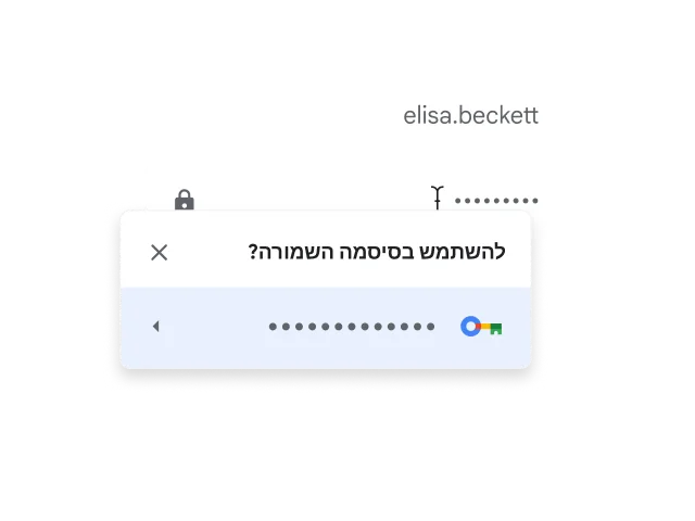 מנהל הסיסמאות של Google מובנה ב-Chrome, ובעזרתו קל לשמור סיסמאות, לנהל אותן ולהגן עליהן אונליין. הוא גם עוזר ליצור סיסמאות חזקות יותר לכל החשבונות.